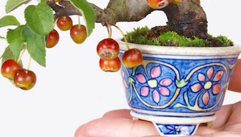但是,盆栽樹上的果實往往依然壯碩,例如蘋果樹和檸檬樹結出的果實就很碩大,在盆栽上看起來很醒目但是又有些不自然。野山楂(又稱西府海棠)或紅石榴樹結出來的果實則較小。